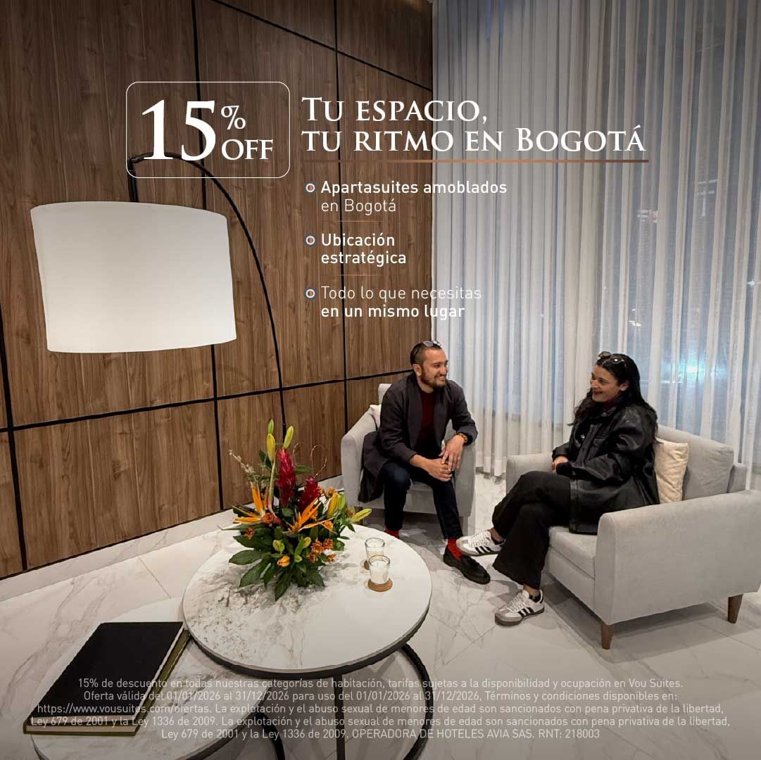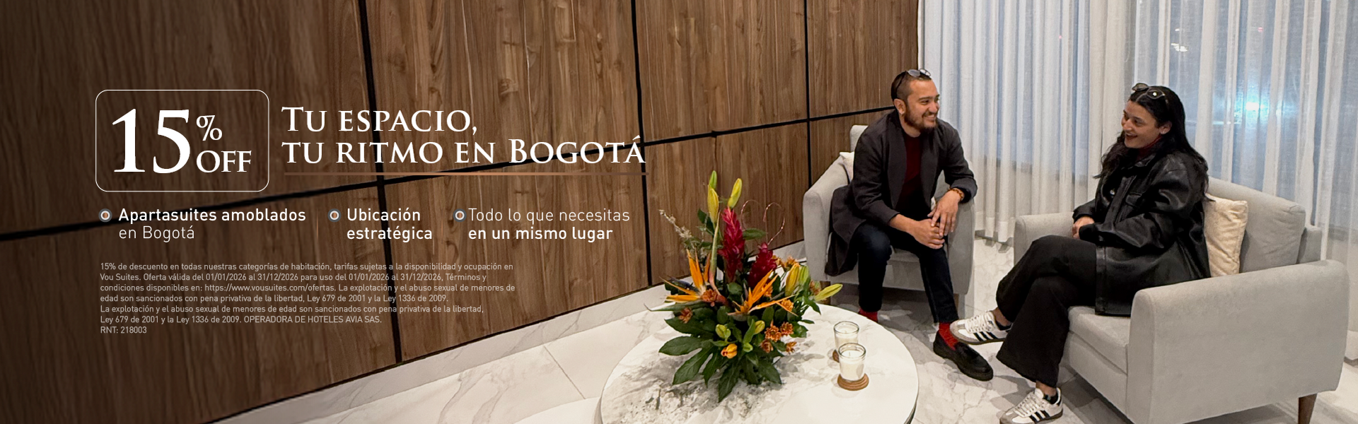 - Tu hogar en Bogotá: VOU Suites, con acceso fácil a transporte y zonas comerciales.