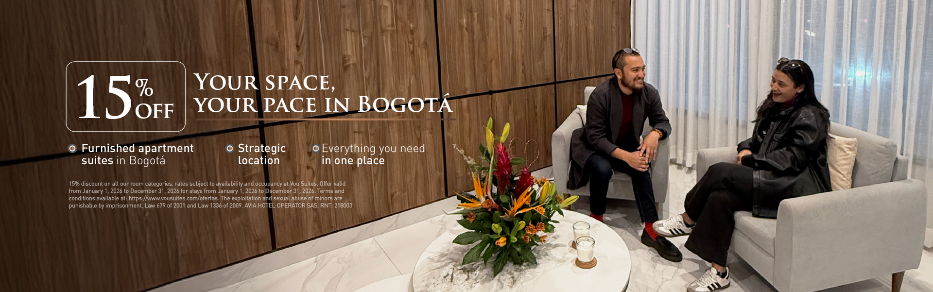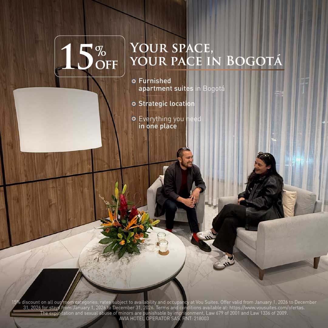 - Your home in Bogotá: VOU Suites, with easy access to transportation and shopping areas.