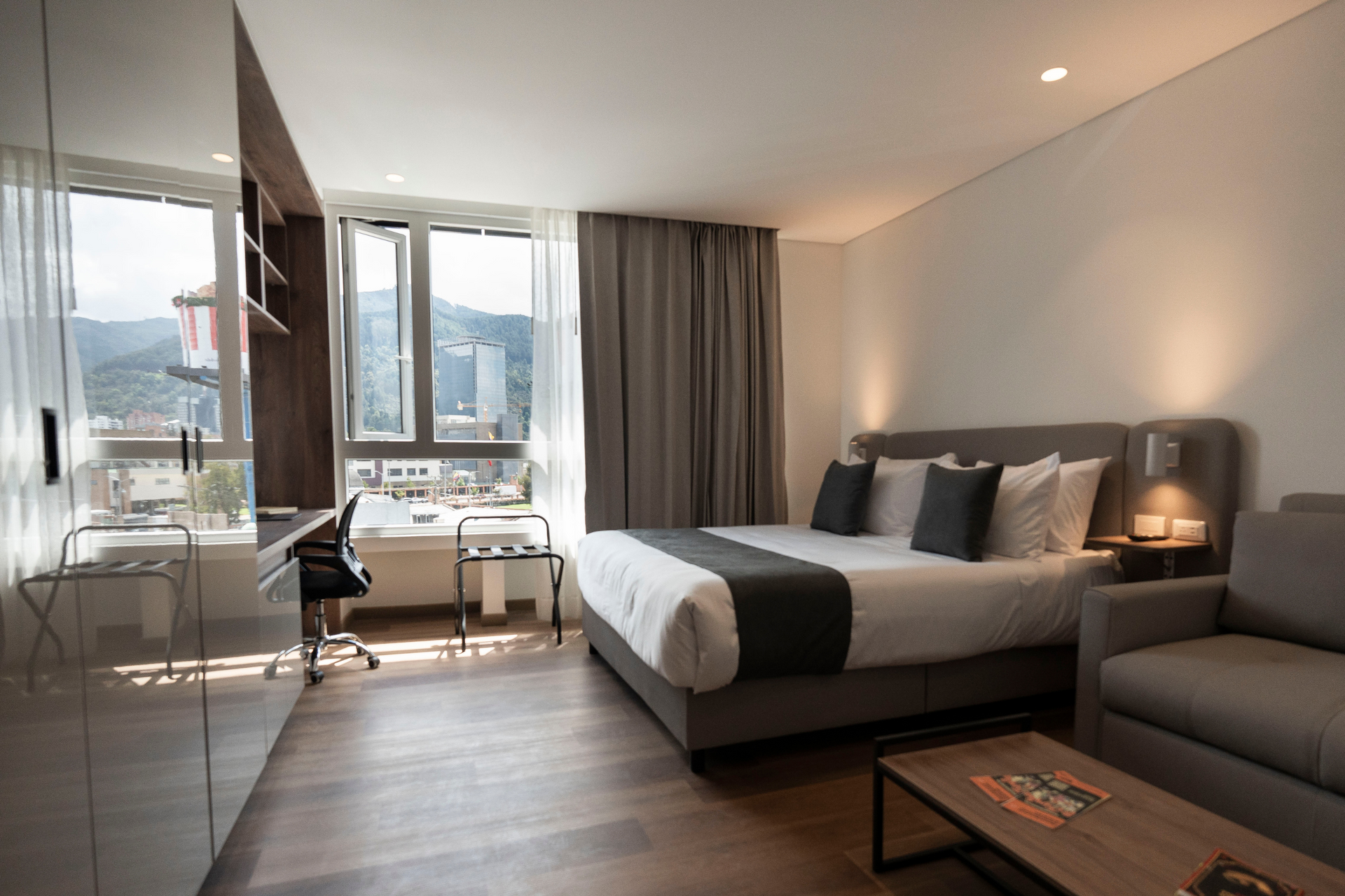 Unlike a traditional hotel, our apartment suites offer the independence of home with key amenities for an active lifestyle: a fully equipped kitchen, high-speed Wi-Fi, coworking space, and a prime location in northern Bogotá.